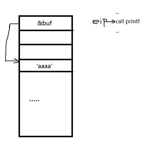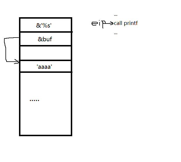 这样函数就打印出第二个参数的地址上的字符串,这样就能正常打印出‘aaaa’。printf函数识别出‘%s’是一个格式化字符串,然后根据这个格式化字符串去取参数,’%s‘默认取第二个参数为作为字符串输出地址也就是‘%s’的下面一个栈空间,这样就能打印出‘aaaa’。
